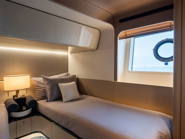 Le pont inférieur est dédié aux cabines des invités et à l’équipage :