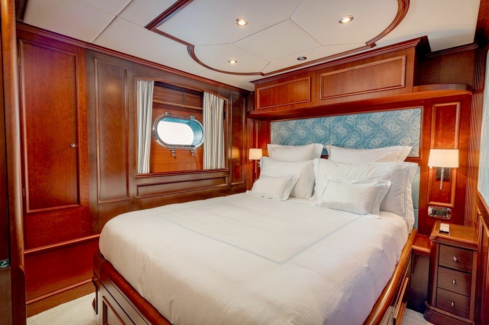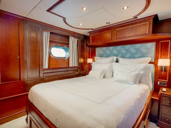 Il peut accueillir jusqu’à 10 invités dans 5 cabines et 6 membres d’équipage dans 3 cabines.