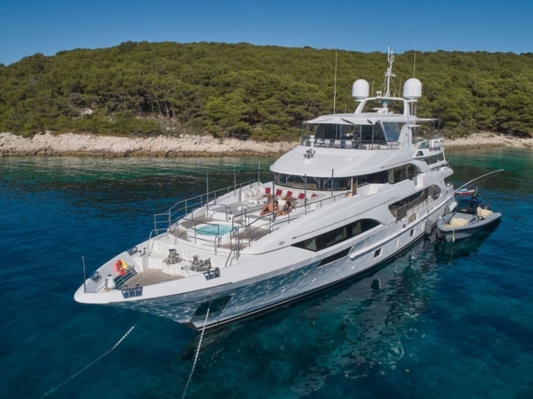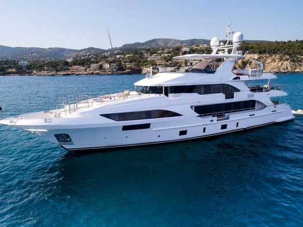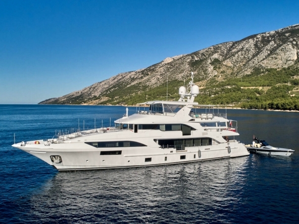 Yacht très bien équipé, incluant : Systèmes de stabilisation CMC en route et au mouillage, propulseurs avant et arrière, deux générateurs Kohler de 80 kW, système de climatisation réversible Frigomar, électronique de navigation Furuno complète, communications par satellite Seatel Sat phone et Inmarsat C, deux dessalinisateurs Idromar de 240 l/h, plateforme de bain hydraulique, garage arrière avec l’annexe principale Williams Jet de 5,05 m moteur in-bord diesel de 110 cv et deux jet skis, l’annexe secondaire Zodiac avec hors-bord Yamaha stockée sur le pont de soleil, etc…