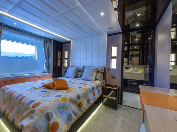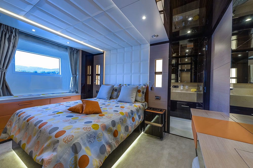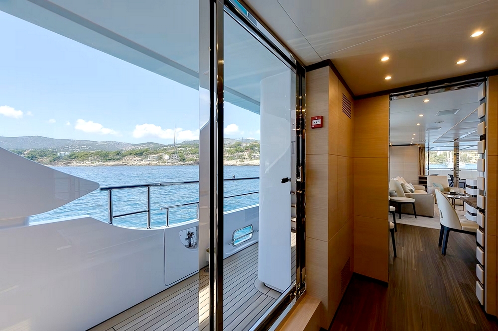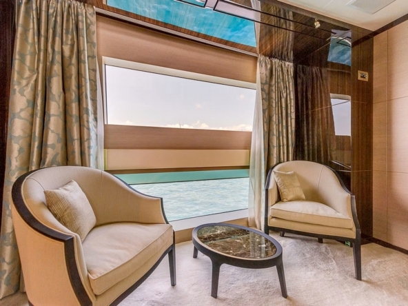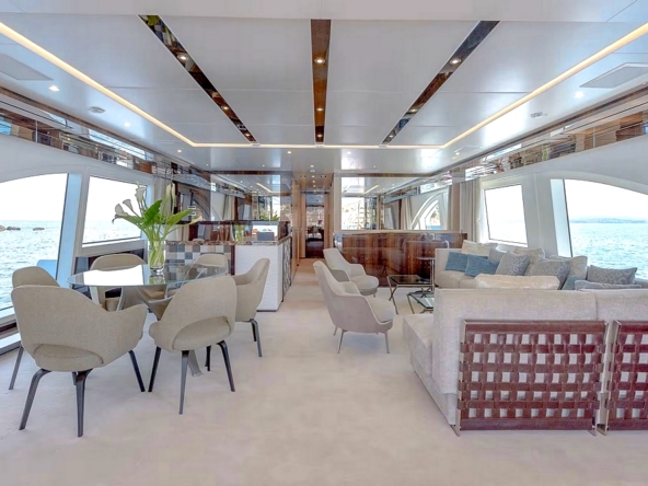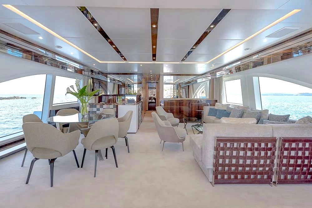 L’agencement de l’intérieur, conçus par le prestigieux cabinet de design Zuretti Studio, est contemporain et sobre. Il offre une sensation d’espace et une luminosité exceptionnelle grâce à ses dix larges fenêtres latérales.
