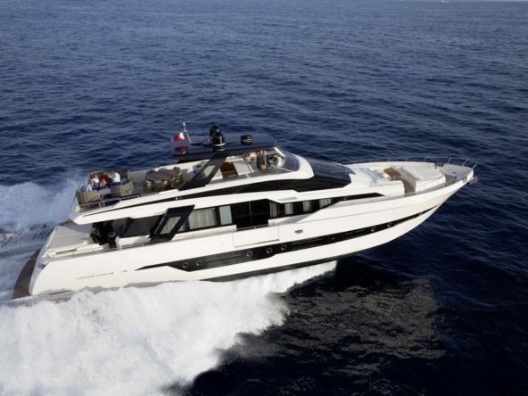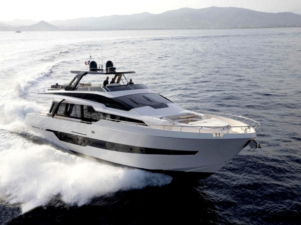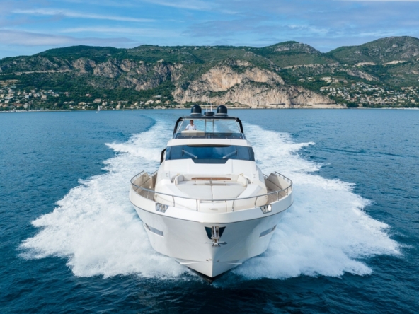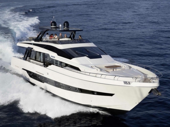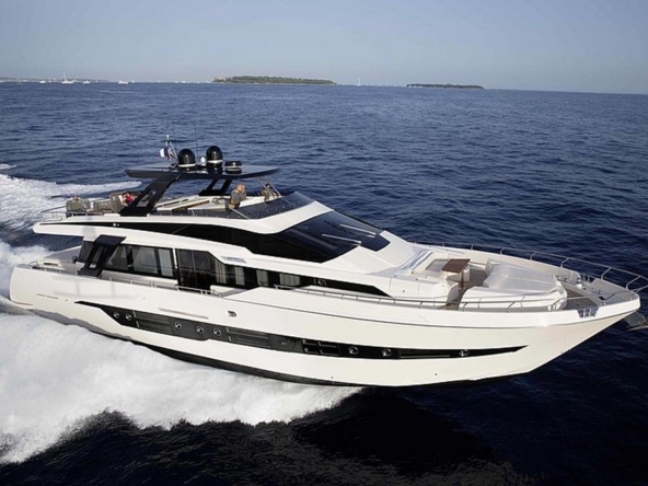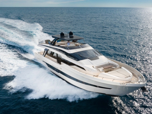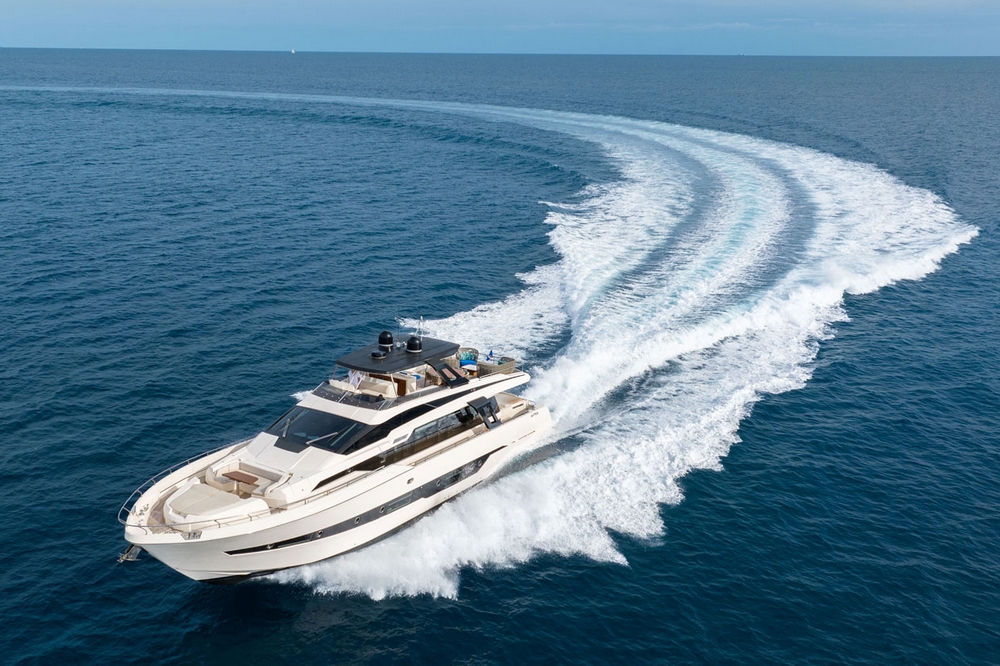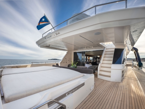 Ce bateau, qui s’inspire du style Sanlorenzo, a été conçu par Ferragni Progetti. Ses lignes extérieures épurées, profilées, et contemporaines, allient raffinement et puissance. Construit en polyester par le chantier italien Cayman Yachts, il est robuste, luxueux, et spacieux.