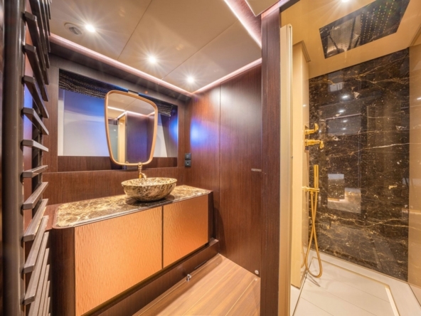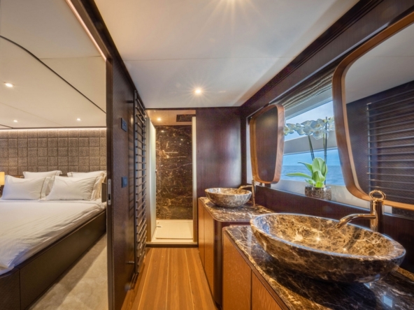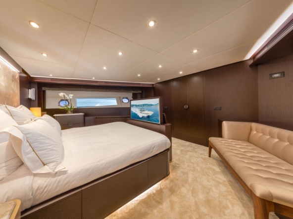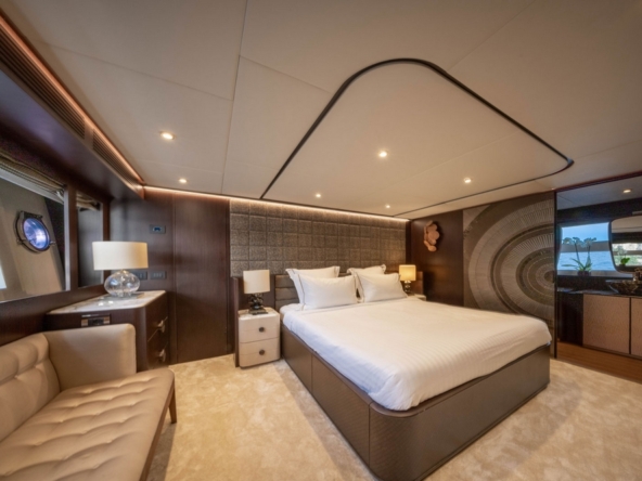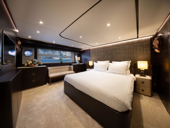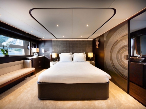 . La suite du propriétaire occupe toute la largeur au milieu bateau. Son design est particulièrement soigné