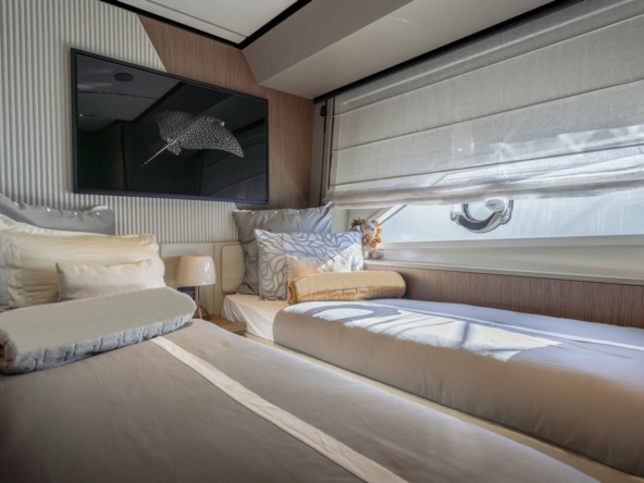 . Les deux cabines invités avec lits jumeaux se partagent une salle de bain commune.