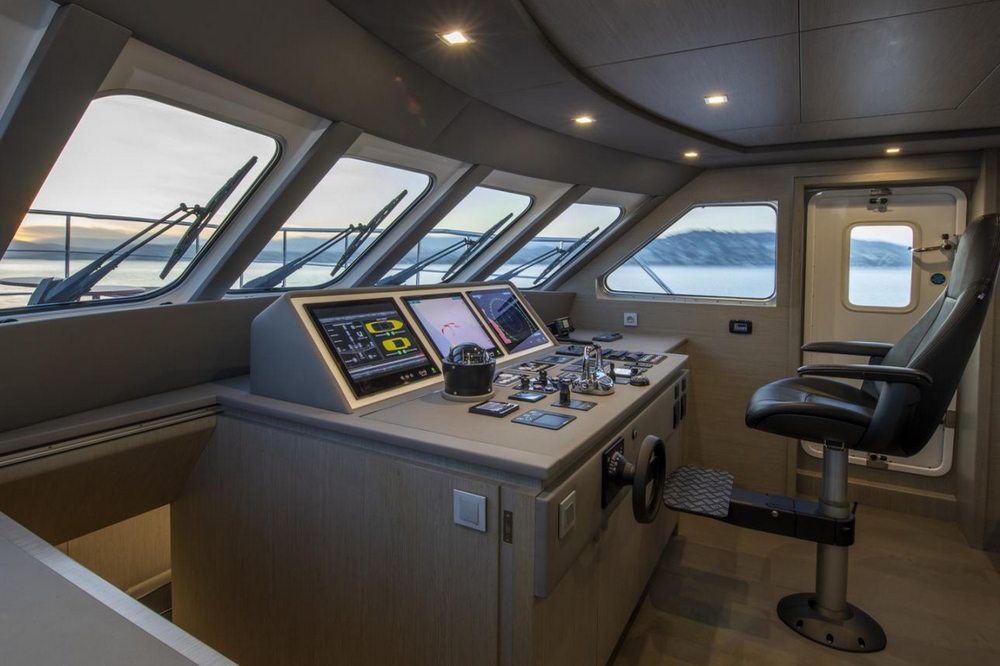 Ses 12.640 litres de gasoil et sa consommation de seulement 26 l/h lui permettent d’atteindre 3.500 miles d’autonomie à 8 nœuds.
