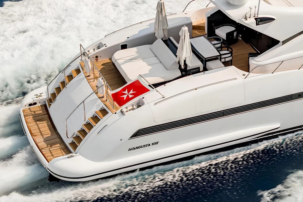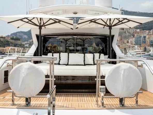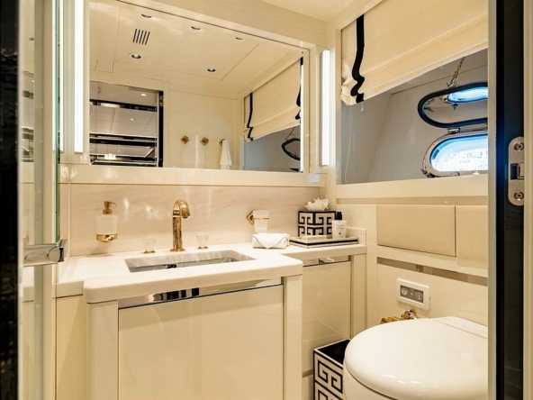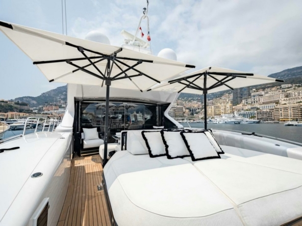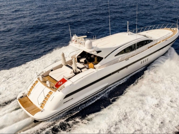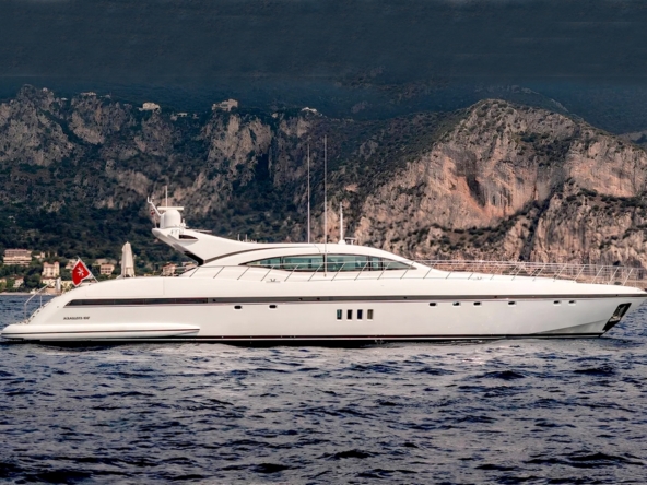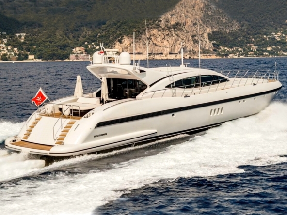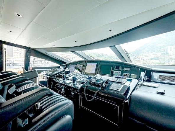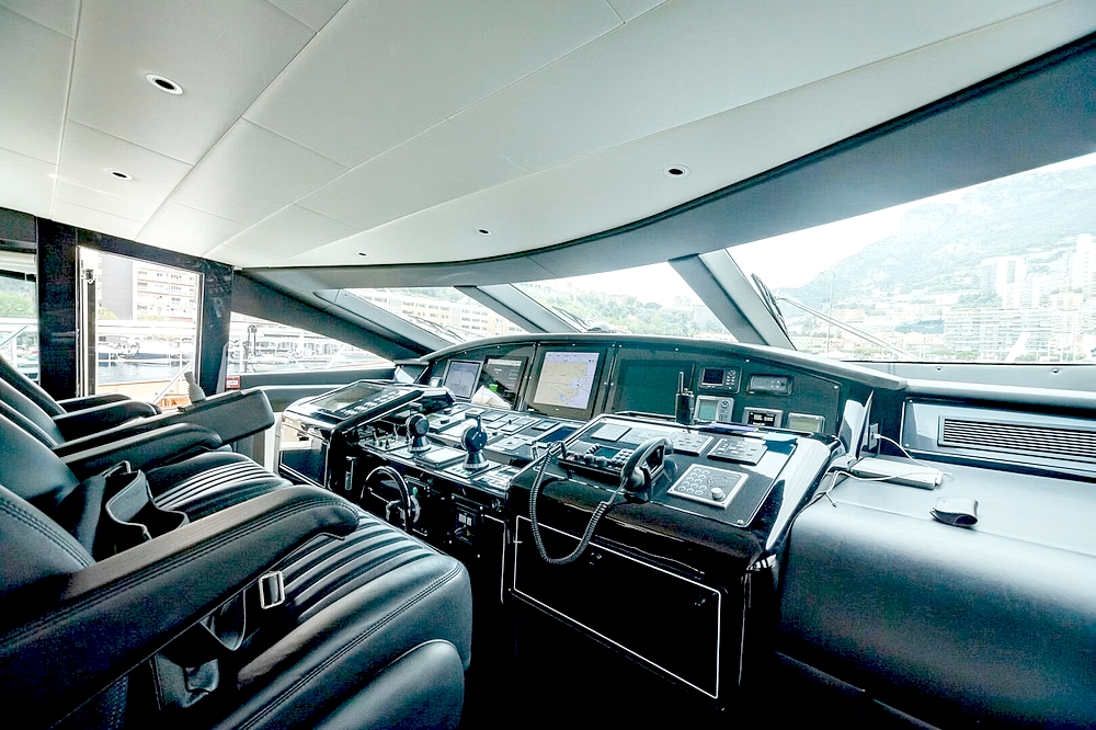 Bateau entièrement équipé, avec : Deux systèmes de stabilisation gyroscopique zéro-speed Item Mare, propulseur d’étrave hydraulique BCS de 47 kW, deux générateurs Kohler de 33 kW, système de climatisation réversible Condaria, électronique de navigation Simrad complète, Flir thermo-caméra, intercom Jotron, dessalinisateur Idromar de 240 l/h, trois garages pour les deux jet skis et l’annexe, plateforme de bain, annexe Castoldi jet diesel de 4,50 m avec 110 cv, deux jet skis Yamaha, etc…
