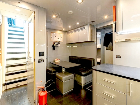. Le quartier de l’équipage, accessibles depuis le salon, est en avant de la salle des machines. Il comprend les