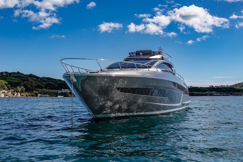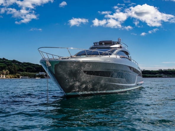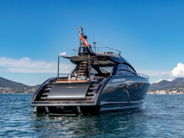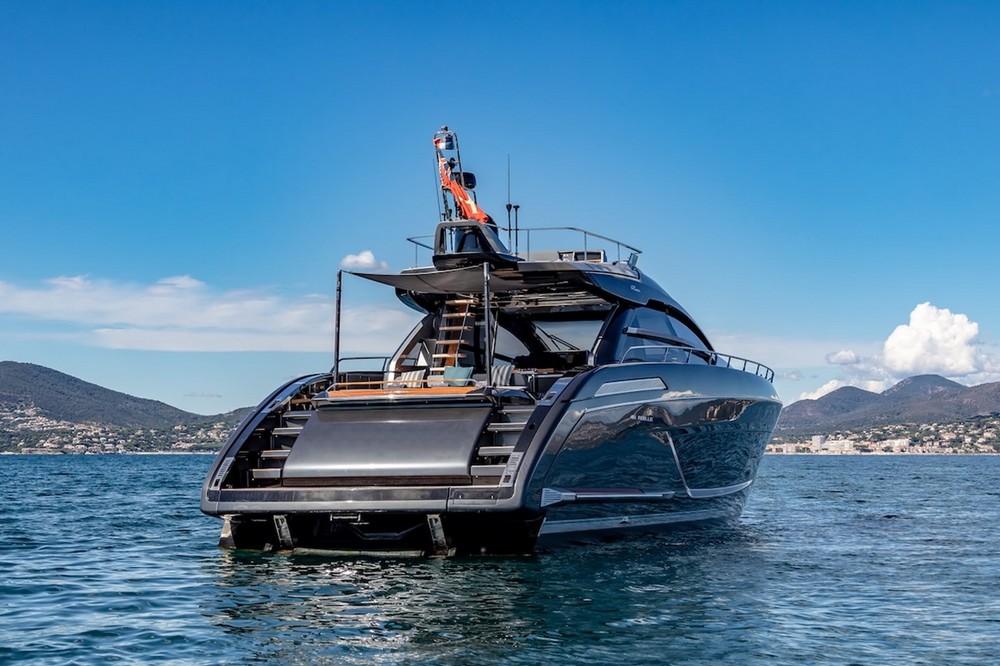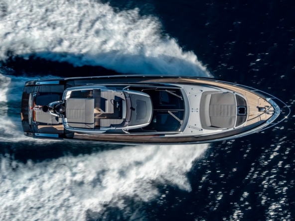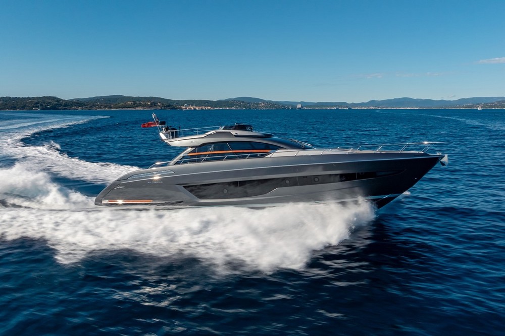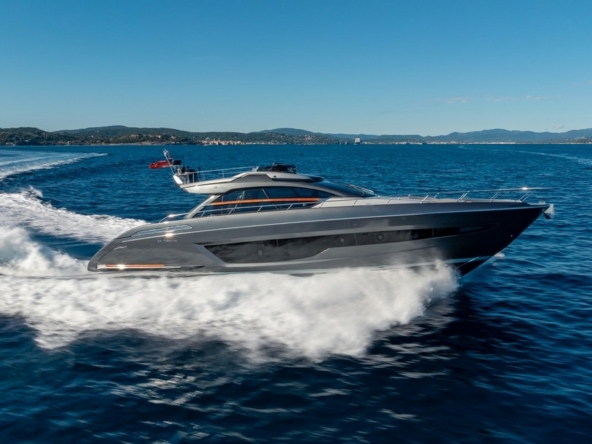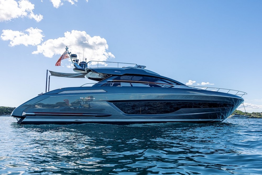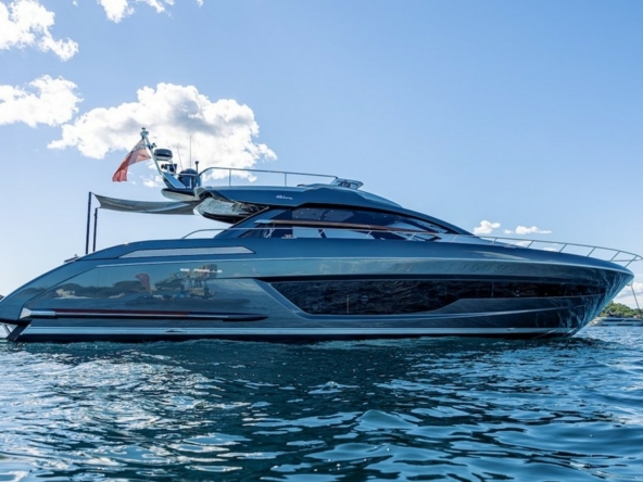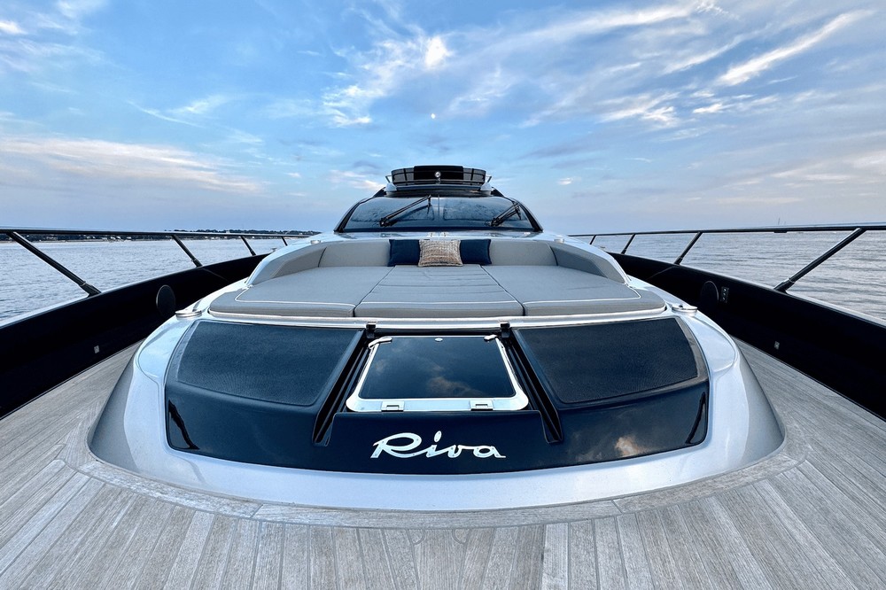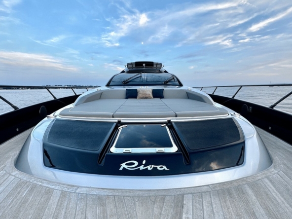 Bateau sportif incarnant l’esprit Riva avec son élégance inimitable. Signé par Officina Italiana Design, arborant une teinte gris requin métallisé soulignée par des touches de bois d’acajou, il allie beauté et performance. Construit en polyester par le célèbre chantier italien Riva SPA, c’est un yacht très rapide et luxueux.
