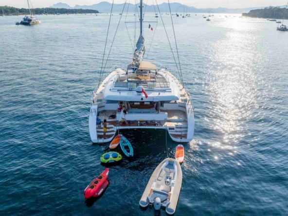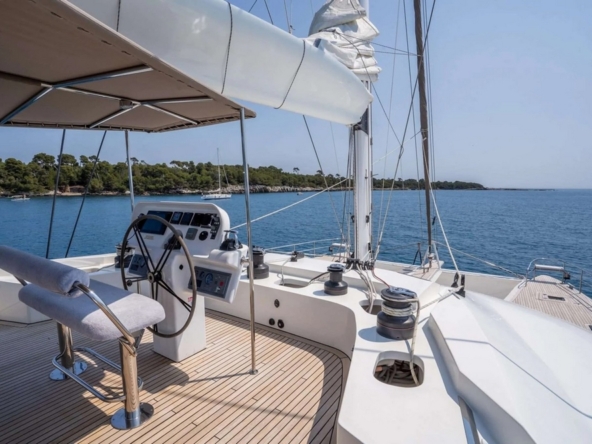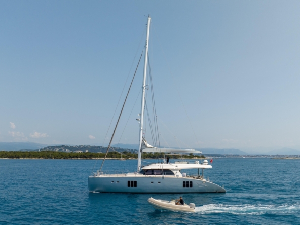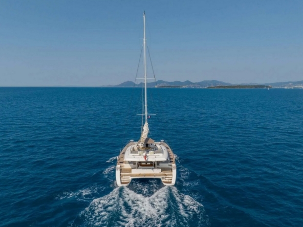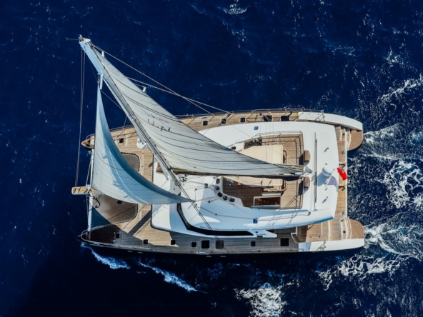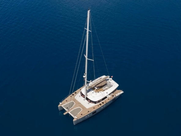 Catamaran à voile robuste et élégant, offrant un équilibre exceptionnel entre stabilité, confort, espace, et performances. Conçu et construit en polyester par le chantier polonais Sunreef, il est idéal pour des croisières prolongées en famille et pour le charter.