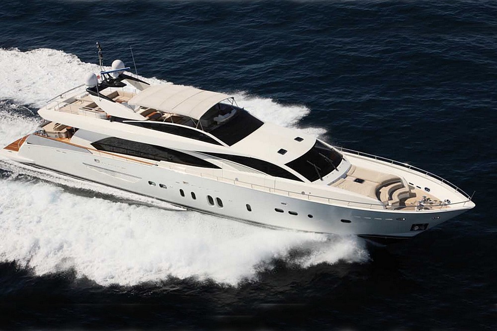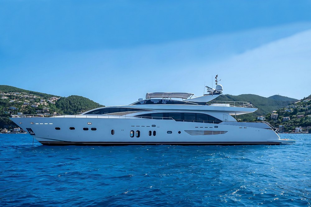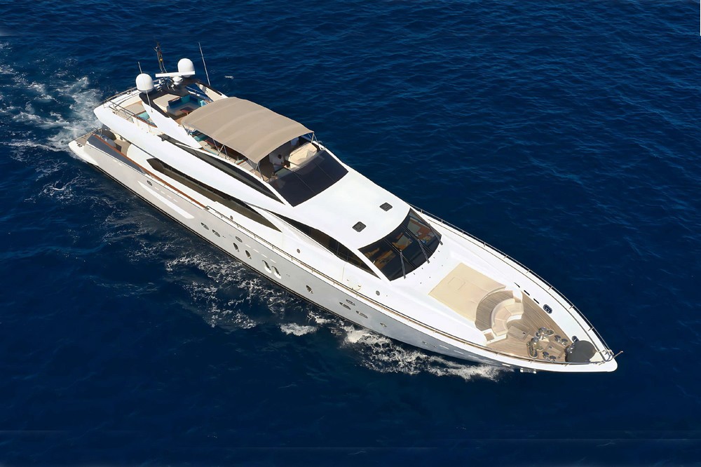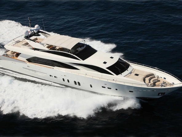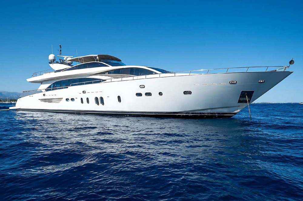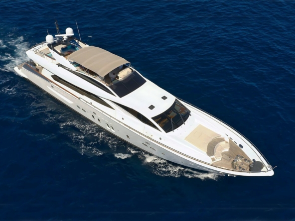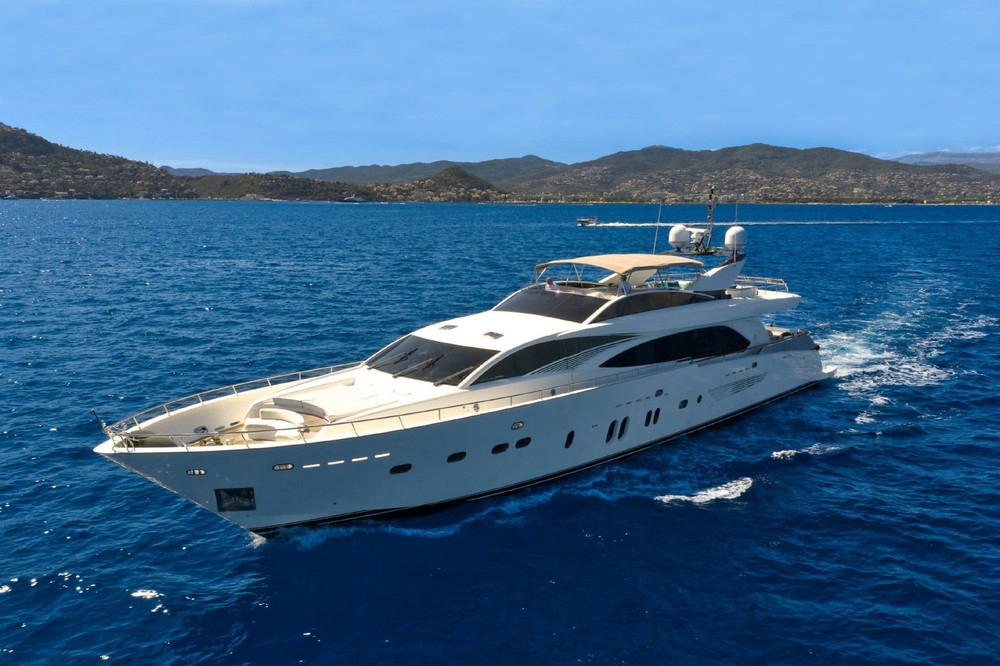 Boat very well equipped, features: SK35 zero-speed gyroscopic stabilization system, bow thruster, 2 x 55 kW Kohler generators, Condaria reverse cycle air conditioning, 180 l/h watermaker, complete Furuno and Simrad navigation electronics, Felcom18 and Inmarsat C satellite communications, swimming platform, aft garage including a 4.70 m Zodiac tender with 80 hp engine and a Sea-Doo jet ski. Water toys (carbon fiber paddleboard, wakeboard, donuts, banana, water skis, fishing gear), etc…