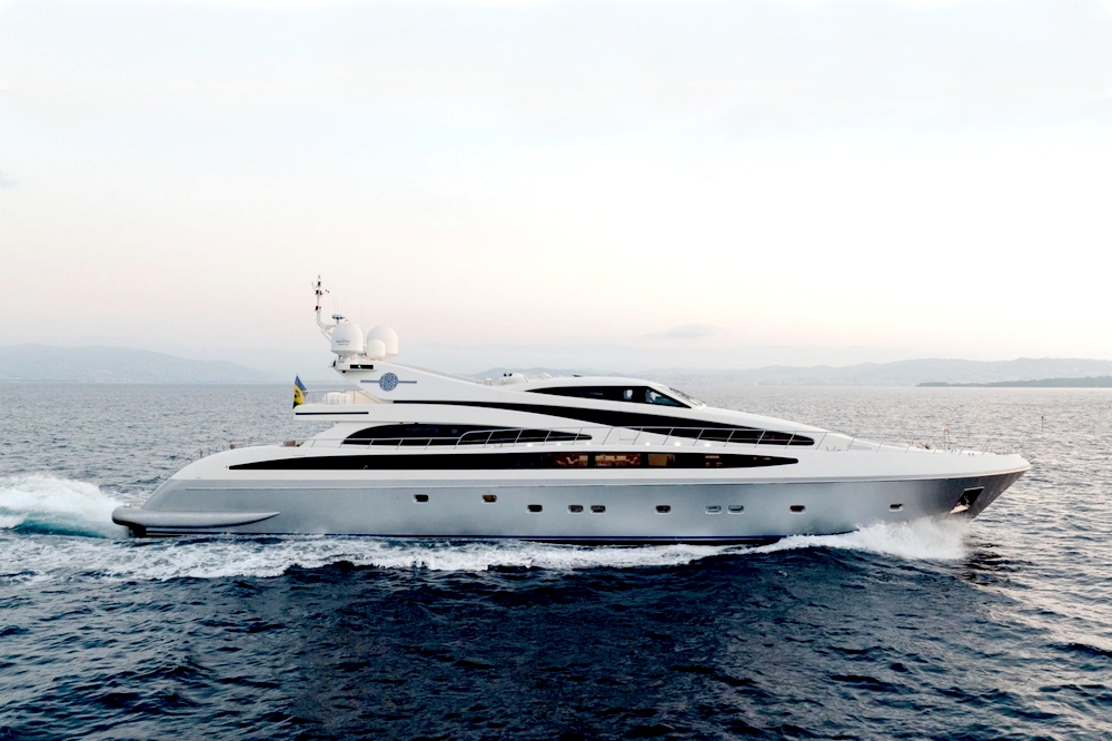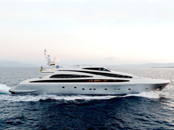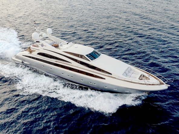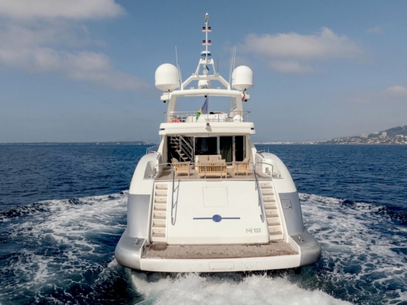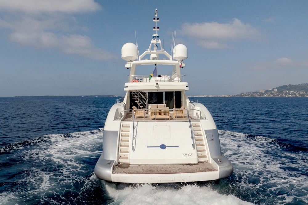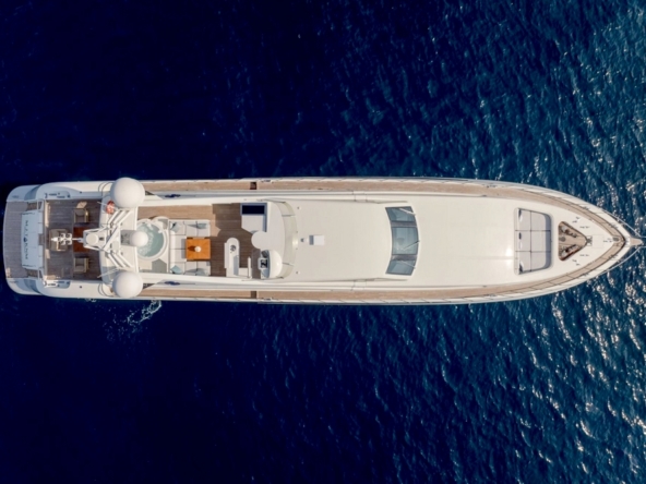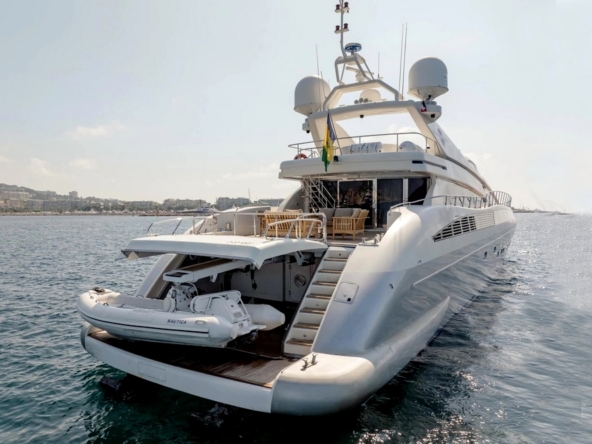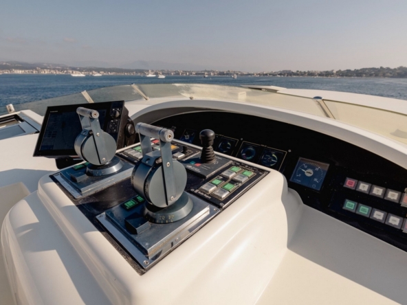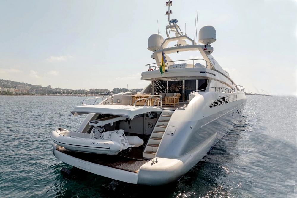 Boat well equipped, including: Bow thruster, 2 x 80 kW Kohler generators, reverse cycle air conditioning throughout, full navigation electronics and satellite communications, watermakers, aft garage with 5.00 m Nautica Jet tender, swimming platform, etc…