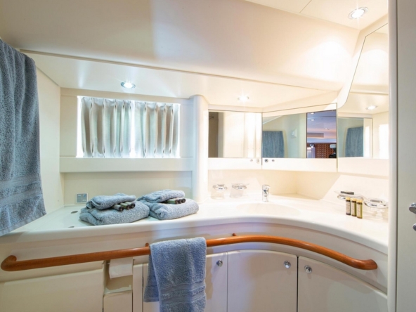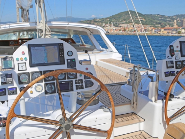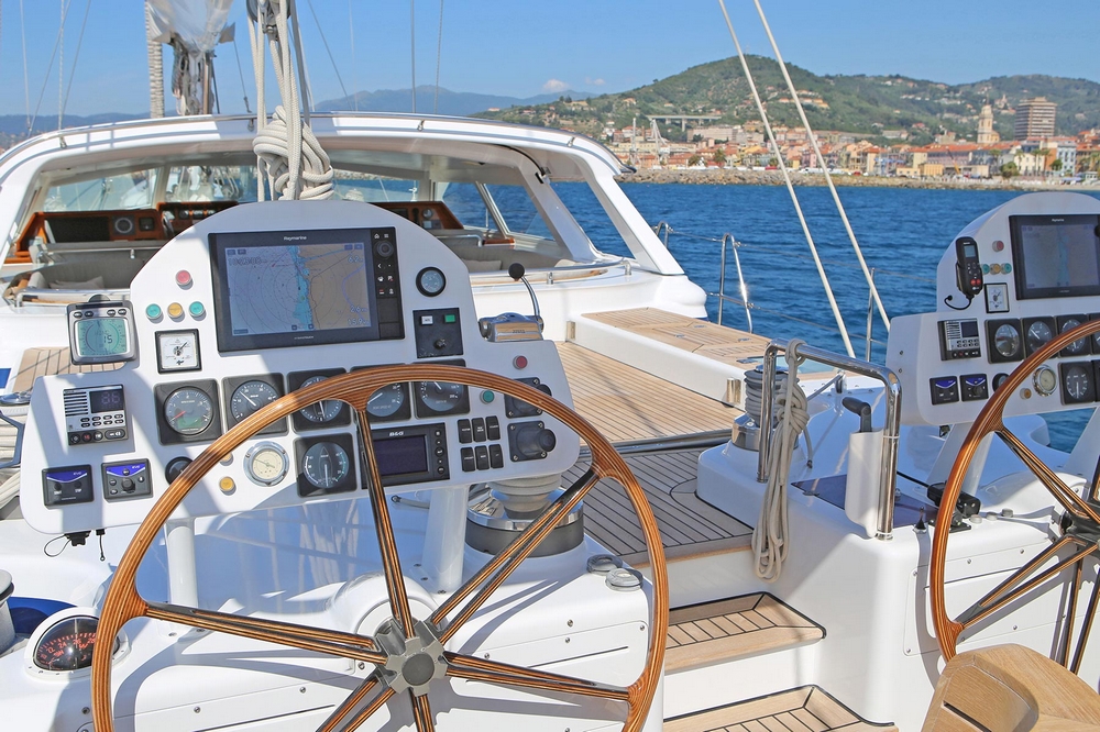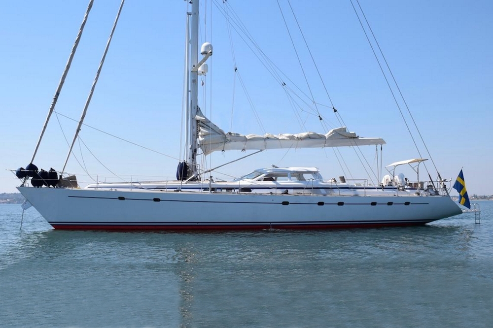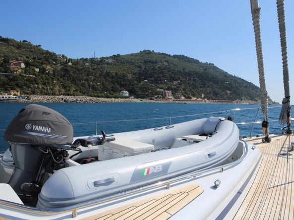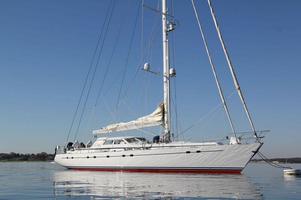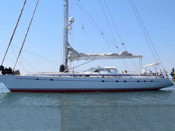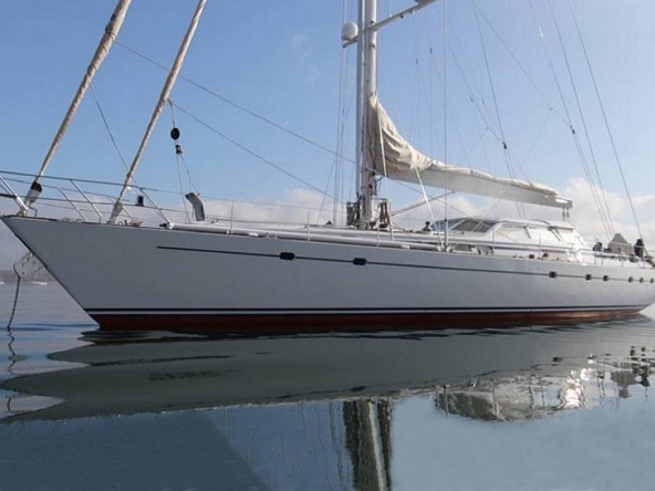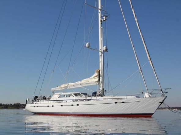 This sailing yacht is very well equipped, features: Hydromar bow and stern thrusters (35 kW and 20 kW), Onan 32 kW generator + Westerbeke 12 kW generator, Climma reverse cycle air conditioning system, complete B&G and Raymarine navigation electronics, Thrane & Thrane and Satcom Fleet 66 satellite communications, Hydromar hydraulic gangway and swimming platform, AB aluminum tender with 40 hp, Bauer diving compressor, etc…