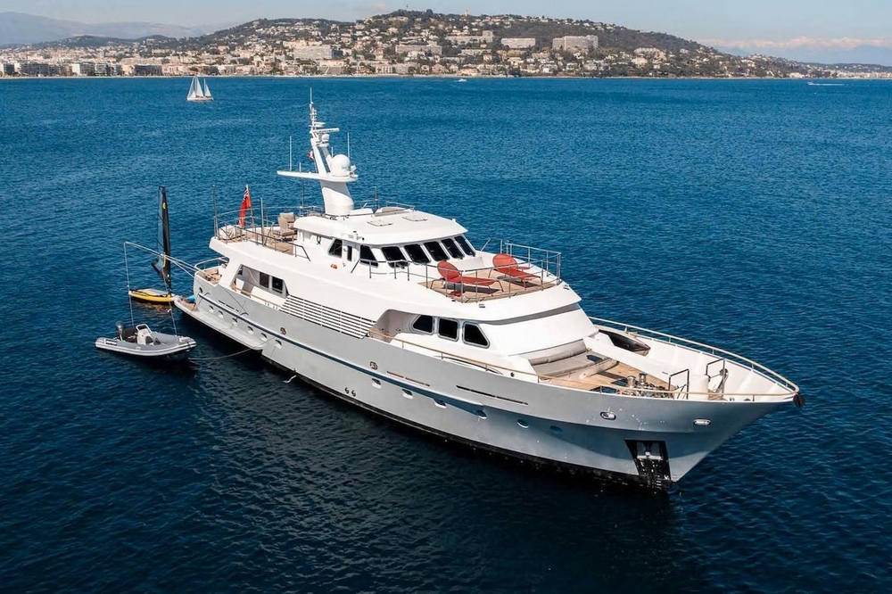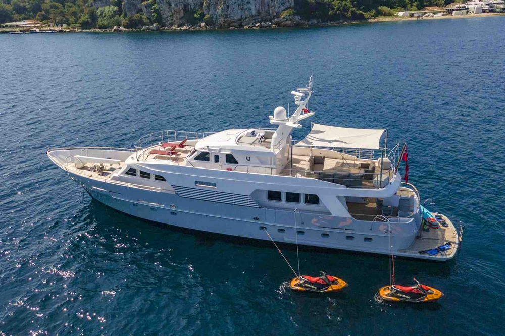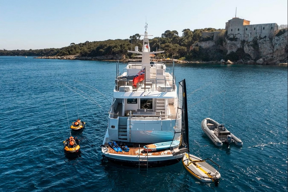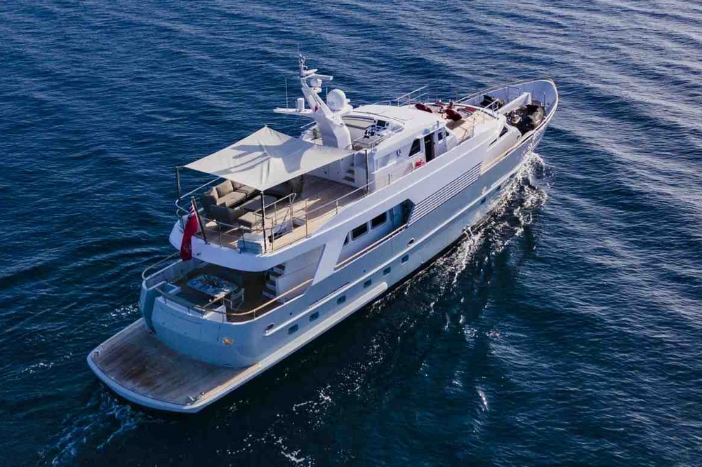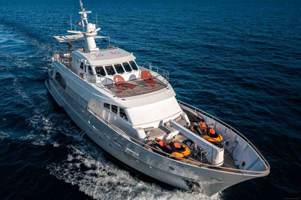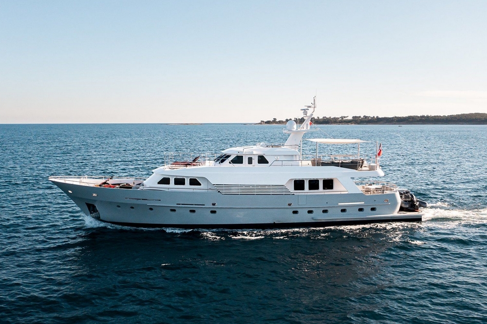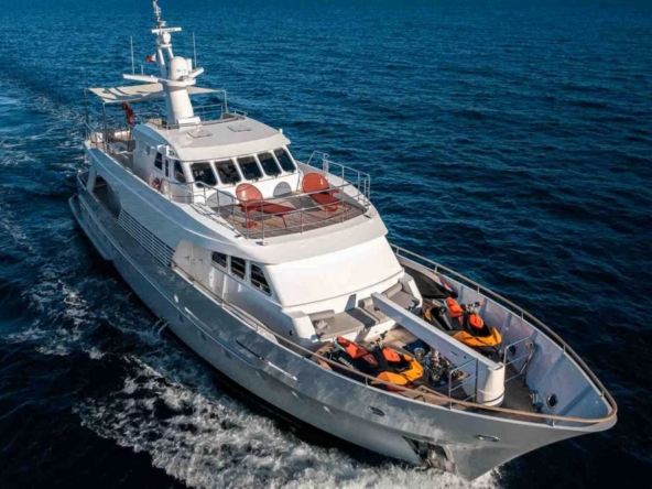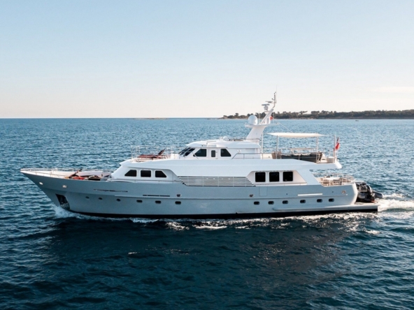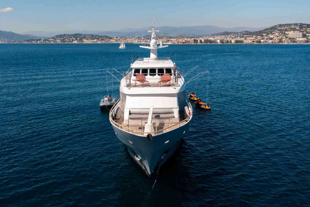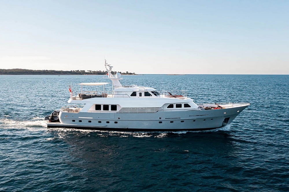 Boat well equipped, including: Humphree electric stabilization system, bow and stern thrusters, 2 x 27 kW Kohler generators, 16,000 BTU reverse cycle air conditioning, complete Furuno navigation electronics, 280 l/h Tecnicomar watermaker, aft garage for the 3.25 m Williams Sport Jet tender with 110 hp, etc…
