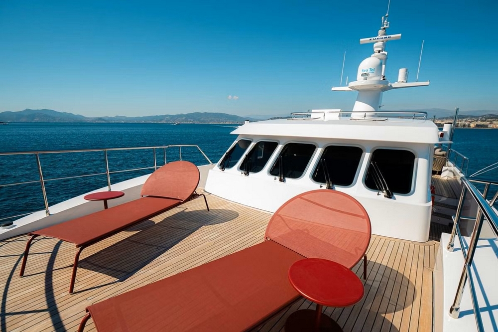 A large sunbathing and a Portuguese saloon are integrated into the foredeck.