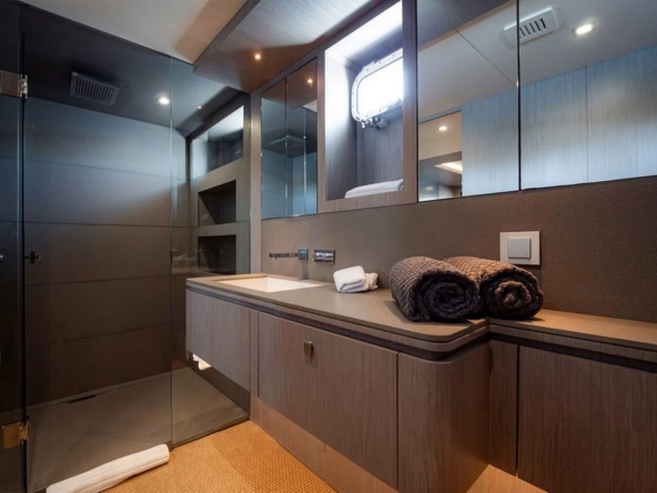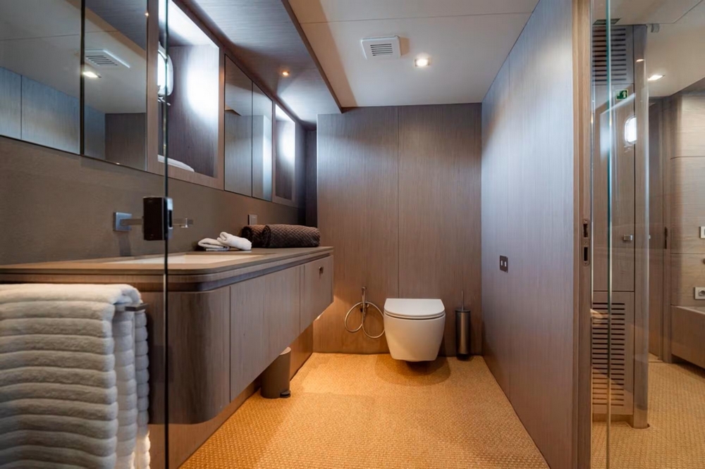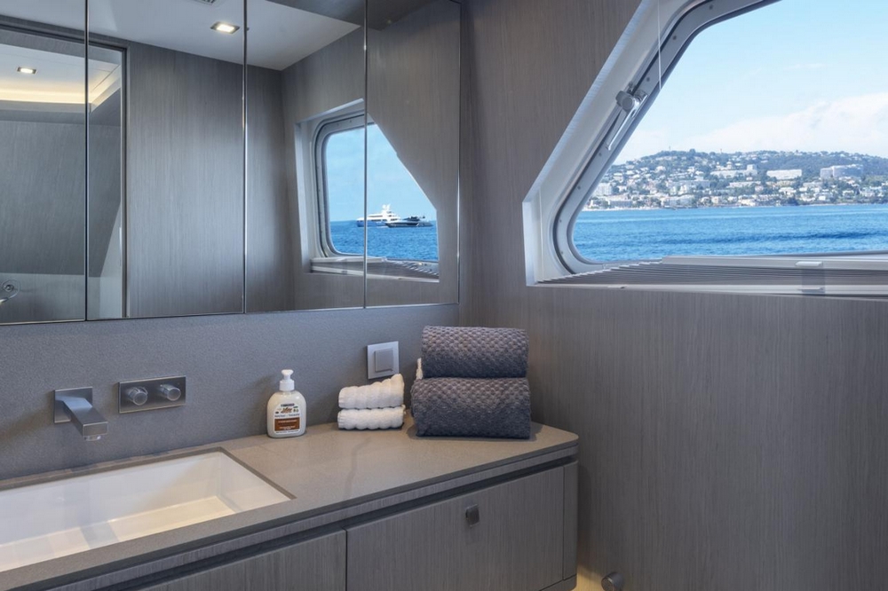 boat and directly accessible from the owner's suite via a dedicated staircase. It is accommodated with an office, an L-