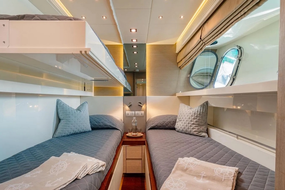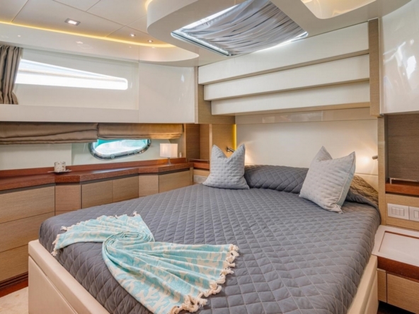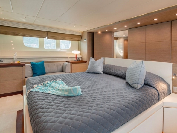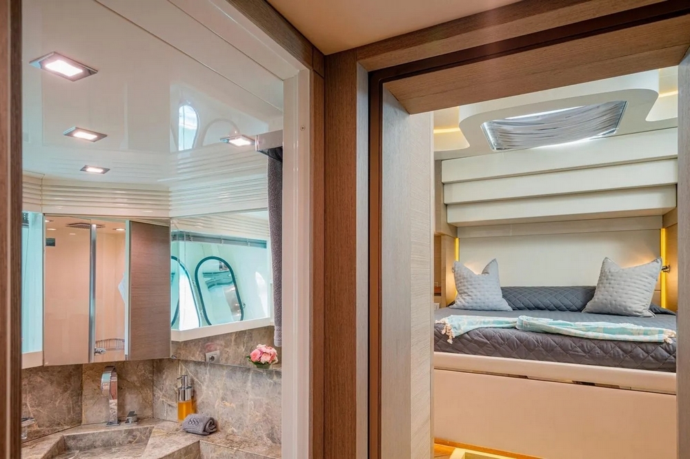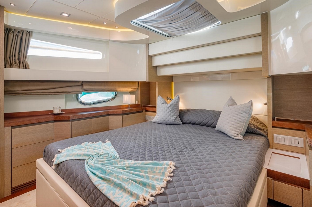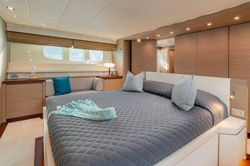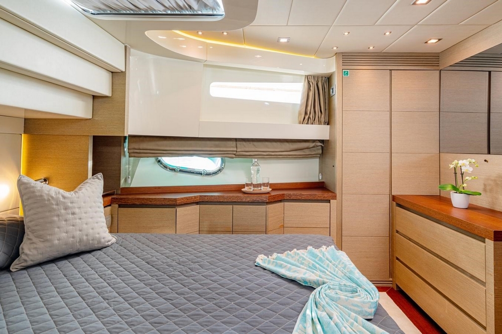 The VIP cabin is forward, with a queen-size bed and ample storage.