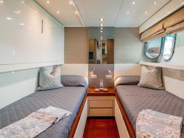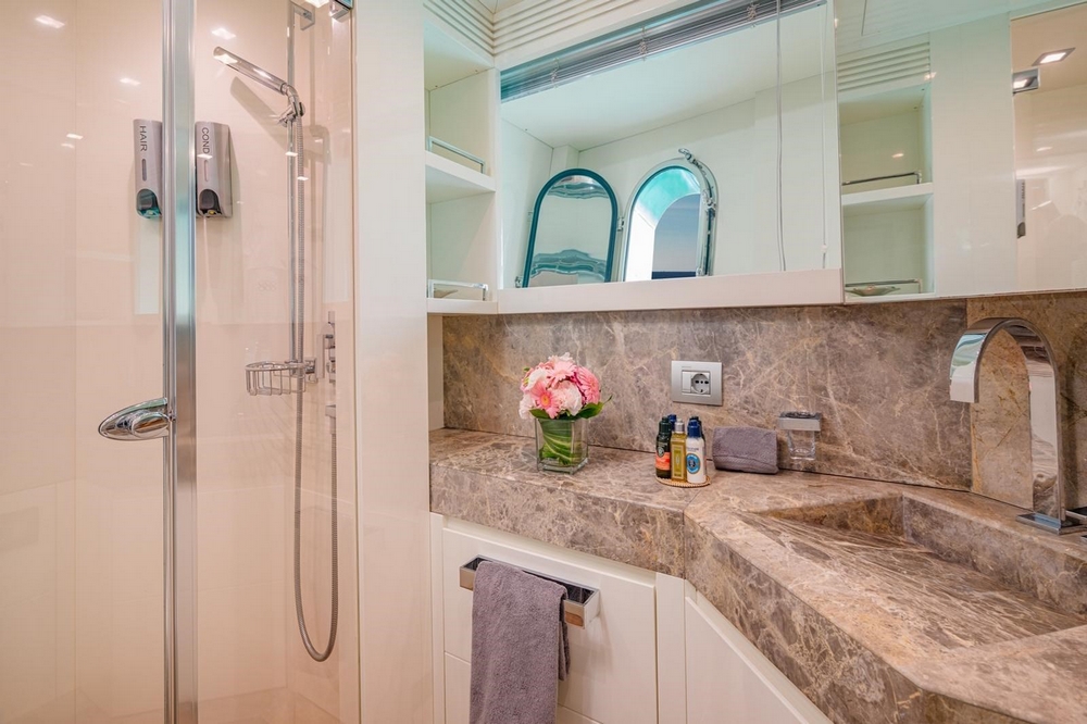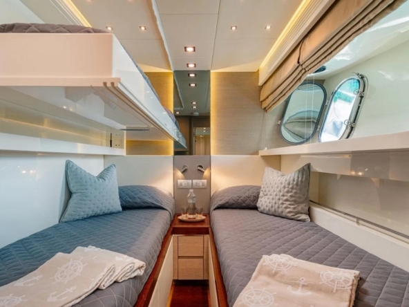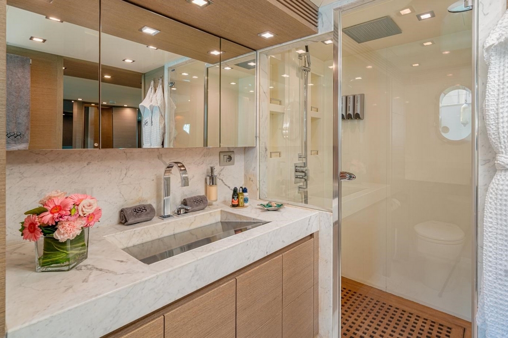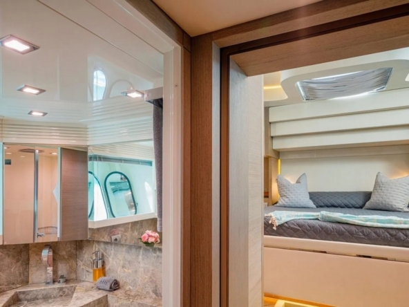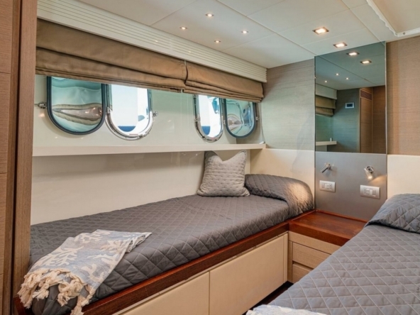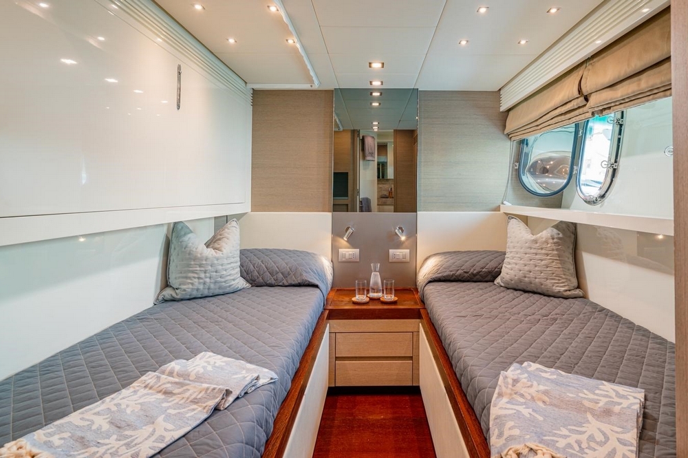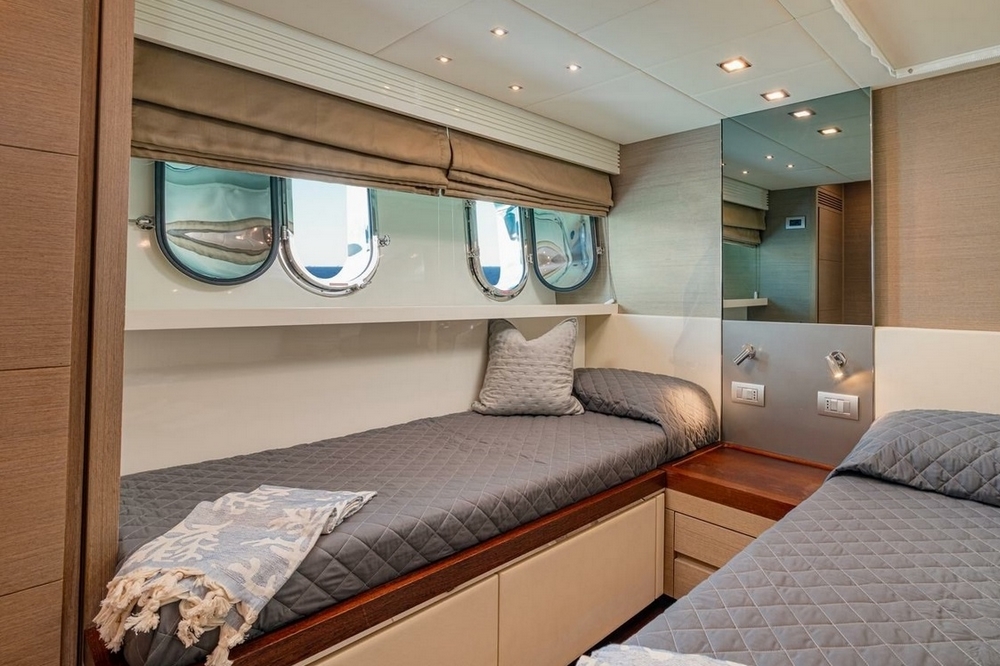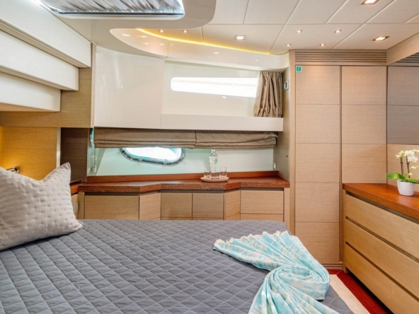 The VIP cabin is forward, with a queen-size bed and ample storage.