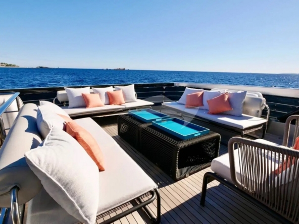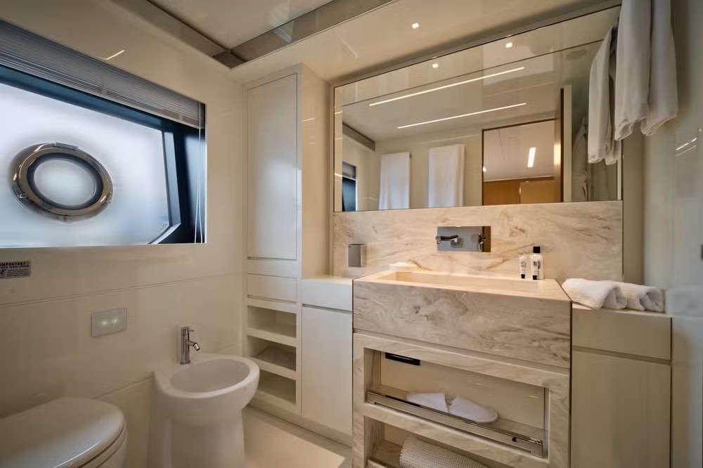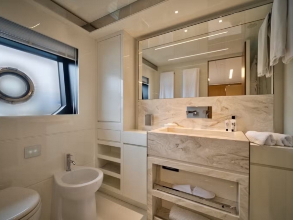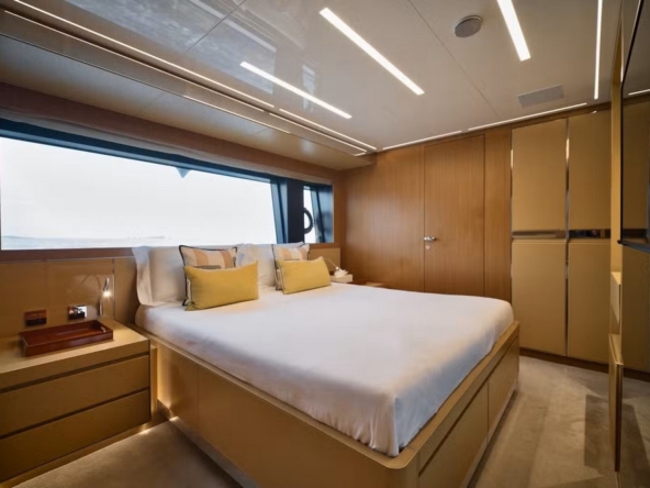Boat fully equipped, with: Sidepower underway stabilization system and two zero-speed gyroscopic stabilizers at anchor, Sidepower bow and stern thrusters, 2 x 33 kW Kohler generators, 216,000 BTU Condaria reverse cycle tropical air conditioning, complete navigation electronics, Starlink communication system, 2 x 180 l/h Idromar watermakers, aft garage with 4.25 m Sillinger tender and 50 hp engine, swimming platform, water toys (Seadoo Spark jet ski, 2 Seabob F5, 2 wakeboards, 2 SUPs, water skis, diving equipment), etc…
