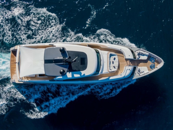 This boat is very well equipped, including: CMC stabilization systems underway and at anchor, Side Power hydraulic bow and stern thrusters, 2 x 45 kW Kohler generators, 180,000 BTU Condaria reverse cycle air conditioning system, complete Simrad navigation electronics, Starlink satellite communications, 240 l/h Idromar watermaker, hydraulic swimming platform, garage with 4.45 m Williams tender, water toys (two Seabob F5s, paddleboard, wakeboard, and water skis), etc…