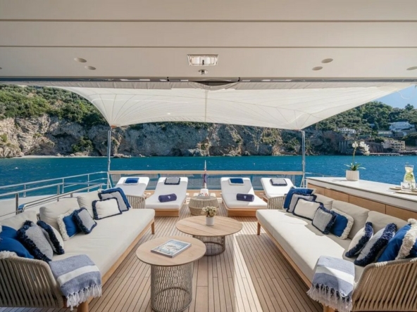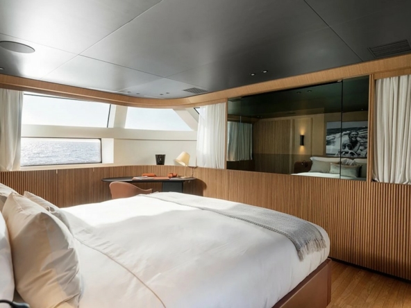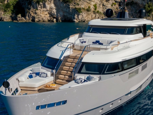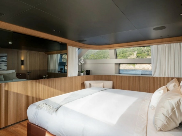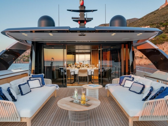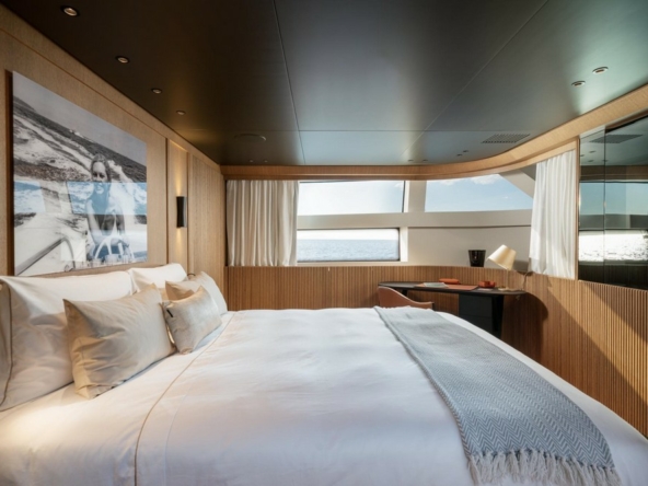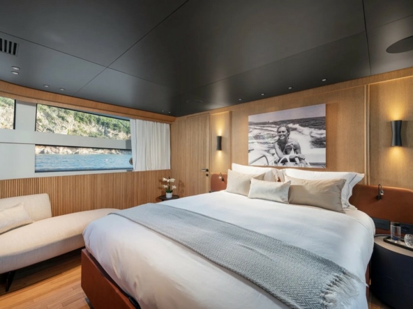This 180 GT yacht, designed by Zuccon International Project and the French naval architect Philippe Briand, boasts an elegant yet powerful silhouette with her impressive freeboard ensuring excellent protection from spray. Built in GRP by the renowned Sanlorenzo shipyard, she is robust and its generous spaces offer exceptional comfort. Furthermore, she features an exceptionally high level of craftsmanship.